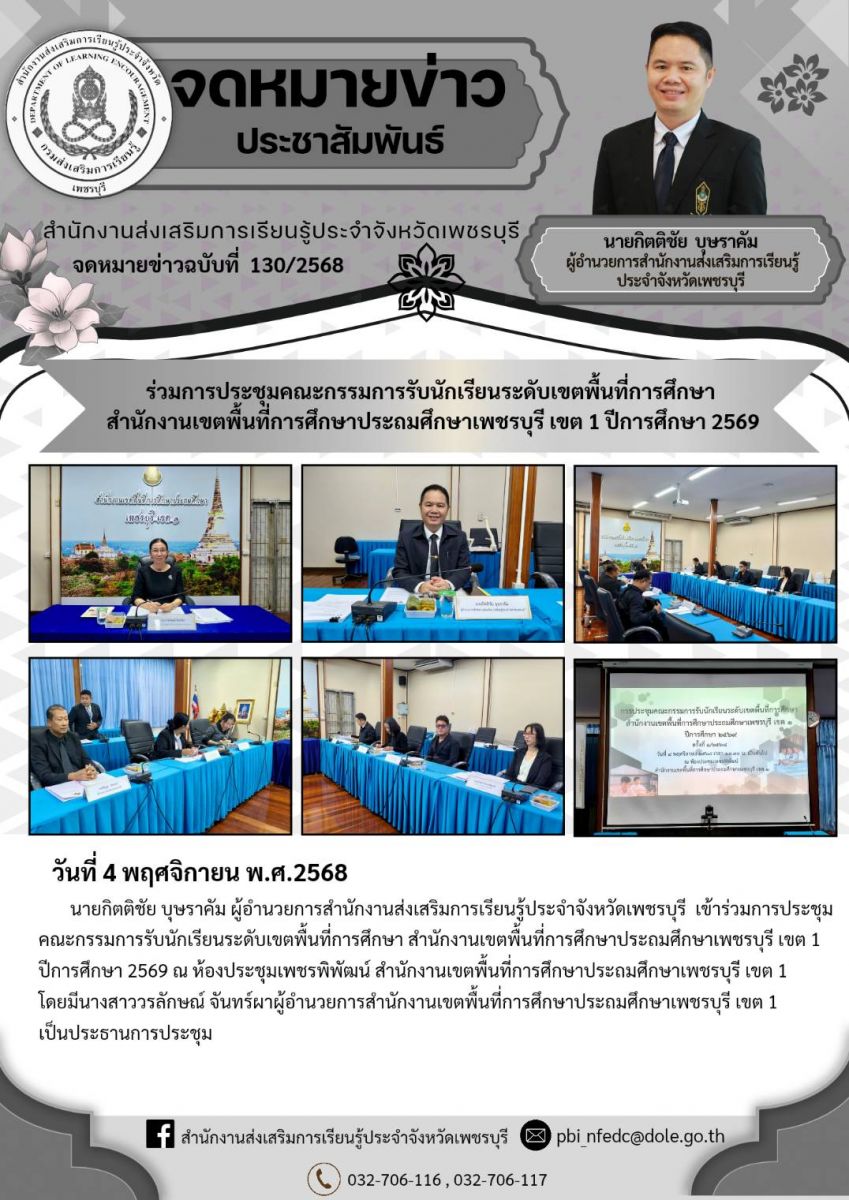 สำนักงาน สกร.ประจำจังหวัดเพชรบุรี เข้าร่วมการประชุมคณะกรรมการรับนักเรียนระดับเขตพื้นที่การศึกษา สำนักงานเขตพื้นที่การศึกษาประถมศึกษาเพชรบุรี เขต 1 ปีการศึกษา 2569 : เข้าร่วมการประชุมคณะกรรมการรับนักเรียนระดับเขตพื้นที่การศึกษา สำนักงานเขตพื้นที่การศึกษาประถมศึกษาเพชรบุรี เขต 1 ปีการศึกษา 2569